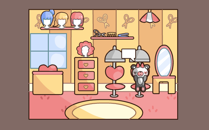 go to hairdresser (can see music) > Needs shampoo for clowns wig